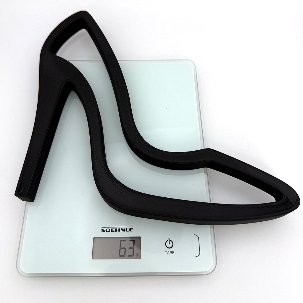 Voeg een stijlvol en chic accent toe aan je interieur met deze moderne 3D-geprinte hoge hak. Het open silhouet benadrukt de iconische vorm van de pump en geeft het geheel een luxe, minimalistische uitstraling. Perfect voor fashionliefhebbers, stylisten, boutiques, salons of iedereen die houdt van elegante decoratie.