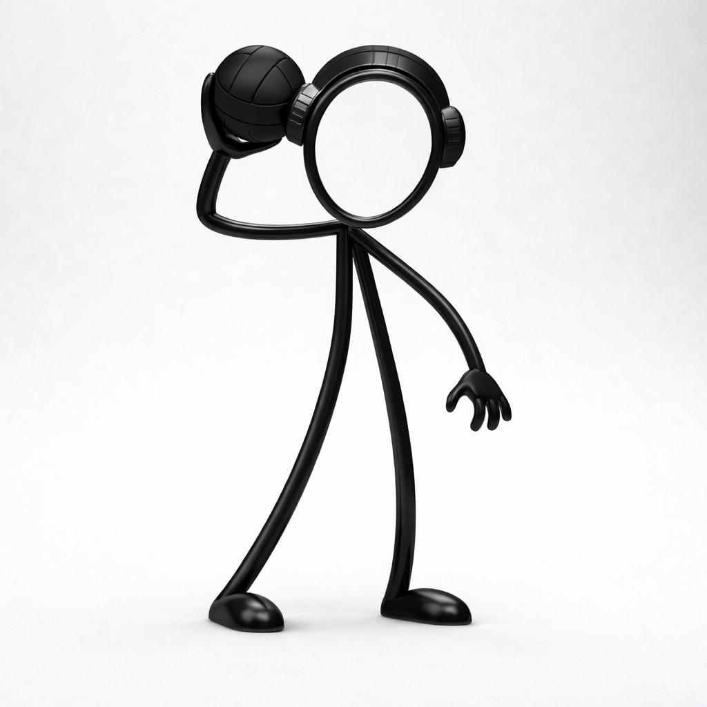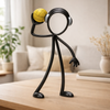 Het iconische Stickyman-figuur staat klaar voor een krachtige worp, met de waterpolobal stevig in de hand. De vloeiende lijnen en het open, herkenbare ontwerp geven het beeld een moderne en sportieve uitstraling die perfect past in een strak interieur.